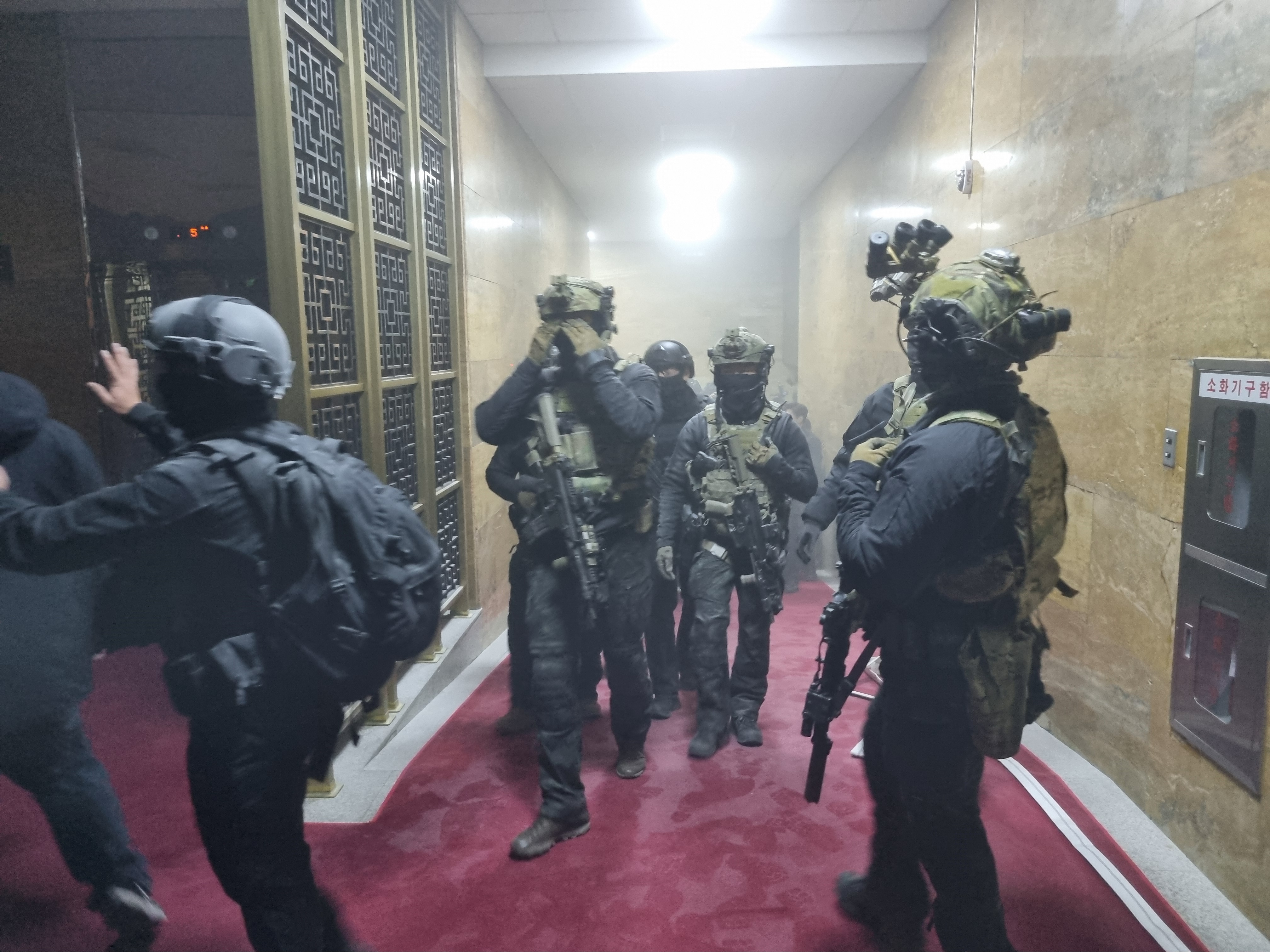 κ΅°Β·κ²½μ μμλ€μ λμ΄λ΄λΌλ μ§μλ λ°μμ΅λλ€. κ΅νλ‘ μμλ€μ΄ λͺ¨μ΄κΈ° μμν λ κ²½μ°°μ κ΅νλ₯Ό λ΄μνκ³ μμλλ°μ. μ‘°μ§νΈ μ²μ₯μ λ°λ₯΄λ©΄ μ€ν 11μ15λΆ μ€ μ λν΅λ Ήμ΄ μ νλ₯Ό ν΄ "κ΅νλ₯Ό ν΅μ νλΌ"λΌκ³ μ£Όλ¬Ένμ΅λλ€. μ€ν 11μ25λΆ κ³μμ¬λ ΉλΆ ν¬κ³ λ Ή μ 1νΈλ₯Ό λ°νν νλ‘λ κ΅νμμ 체ν¬λ λ¦λ¬νμ΅λλ€. μ‘° μ²μ₯μ μ€ μ λν΅λ Ήμ΄ κ΅νλ‘ μλ΄νλ μμμ λν΄ "λ€ μ‘μλΌ, 체ν¬νλΌ"κ³ νλ€κ³ λ°νμ΅λλ€.