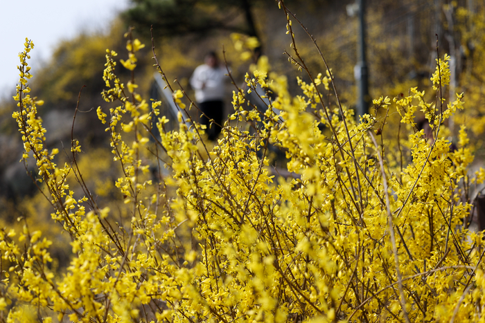 ๋ฎ ์ต๊ณ ๊ธฐ์จ์ด 17๋๊น์ง ์ค๋ฅด๋ฉฐ ์์ฐํ ๋ด ๋ ์จ๋ฅผ ๋ณด์ธ ์ง๋ 24์ผ, ์์ธ ์ฑ๋๊ตฌ ์๋ด์ฐ์ ๊ฐ๋๋ฆฌ๊ฝ์ด ํ๋๋ฌ์ง๊ฒ ํ ๋ชจ์ต์
